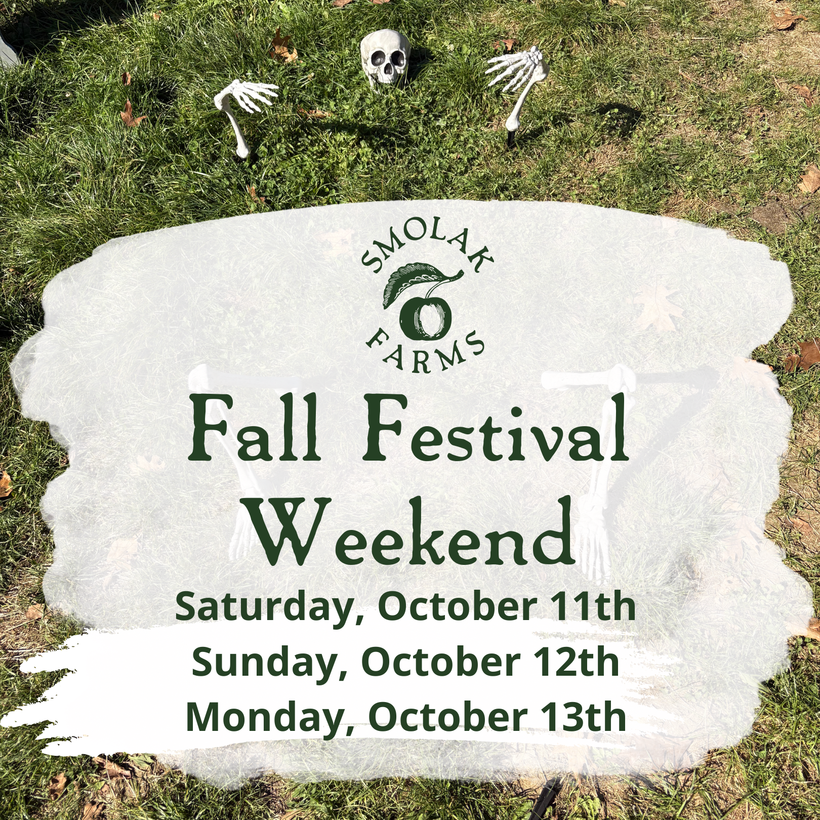 Our next Fall Festival weekend - October 4th & 5th - will kick off three straight weekends of Halloween-themed fun, leading up to our big Trunk & Treat celebration on October 25 & 26. Featured activities will be pumpkin picking, apple picking, hayrides, live music and seasonal treats plus family activities all day long