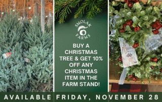 This year's Black Friday Special: Buy a Christmas Tree & Get 10% Off ANY Christmas item in the Farm Stand on Friday, November 28th! It’s the perfect way to start your holiday shopping while picking out the tree that will be the heart of your home. Offer valid Black Friday only. Stop by, shop local, [...]