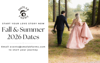 Smolak Farms is where your wedding dreams come to life. A few prime fall 2026 dates are now available, along with summer 2026 and 2027+ openings. Reach out today or join us at the Massachusetts Bridal & Wedding Show on January 10 & 11 to begin planning your magical celebration!
