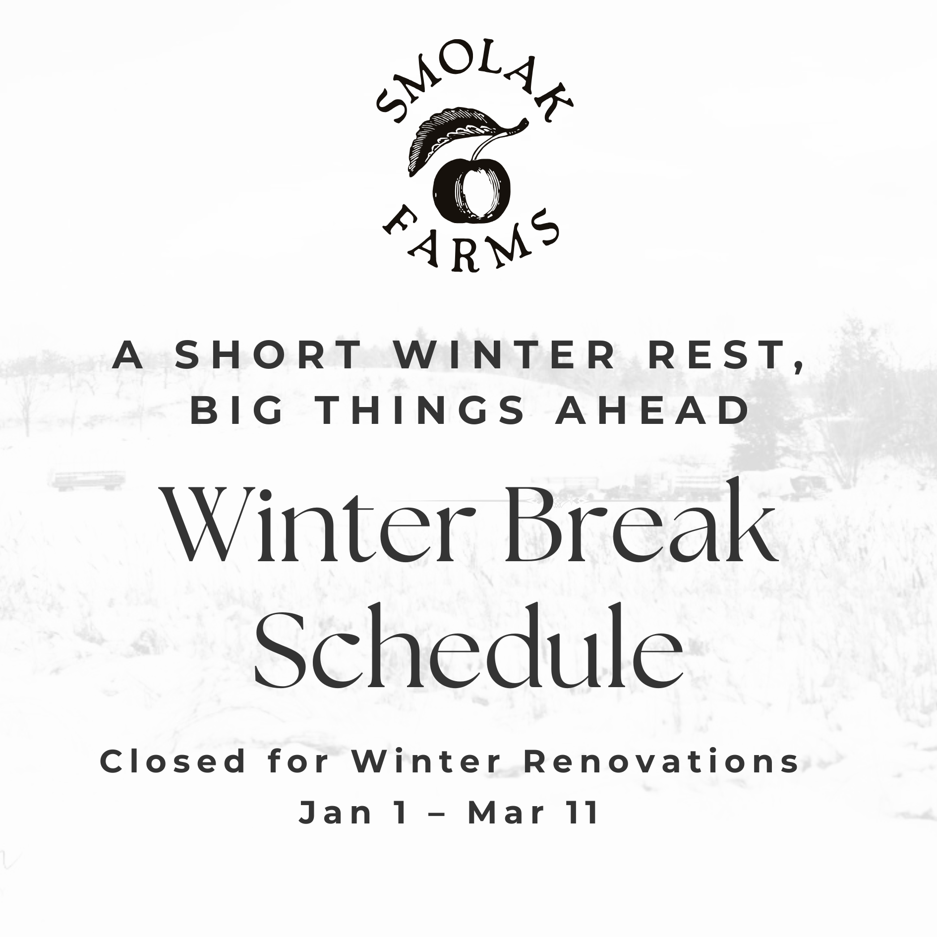 Winter is a season for planning, growing, and dreaming… and we’re doing all three. To give our exciting new greenhouse project (and spring planning!) the attention it deserves, Smolak Farms will take a winter pause and be closed January 1 through March 11. We can’t wait to welcome you back March 12, just in time for Easter Egg Hunts, with new spaces, fresh experiences, and all the farm magic you love. 🌷🐣