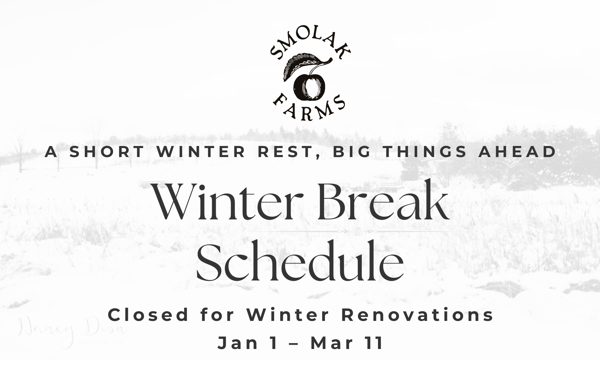 Winter is a season for planning, growing, and dreaming… and we’re doing all three. To give our exciting new greenhouse project (and spring planning!) the attention it deserves, Smolak Farms will take a winter pause and be closed January 1 through March 11. We can’t wait to welcome you back March 12, just in time for Easter Egg Hunts, with new spaces, fresh experiences, and all the farm magic you love.